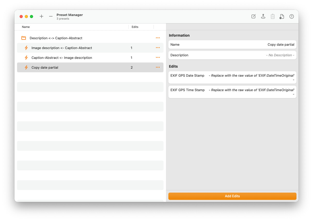 Yes, it is possible to do this automatically for all photos in a folder. MetaImage allows you to use presets to copy the DateTimeOriginal value directly into other metadata fields, including GPS Date Stamp and GPS Time Stamp. When copying, the tool automatically extracts only the date part for GPS Date Stamp and only the time part for GPS Time Stamp.